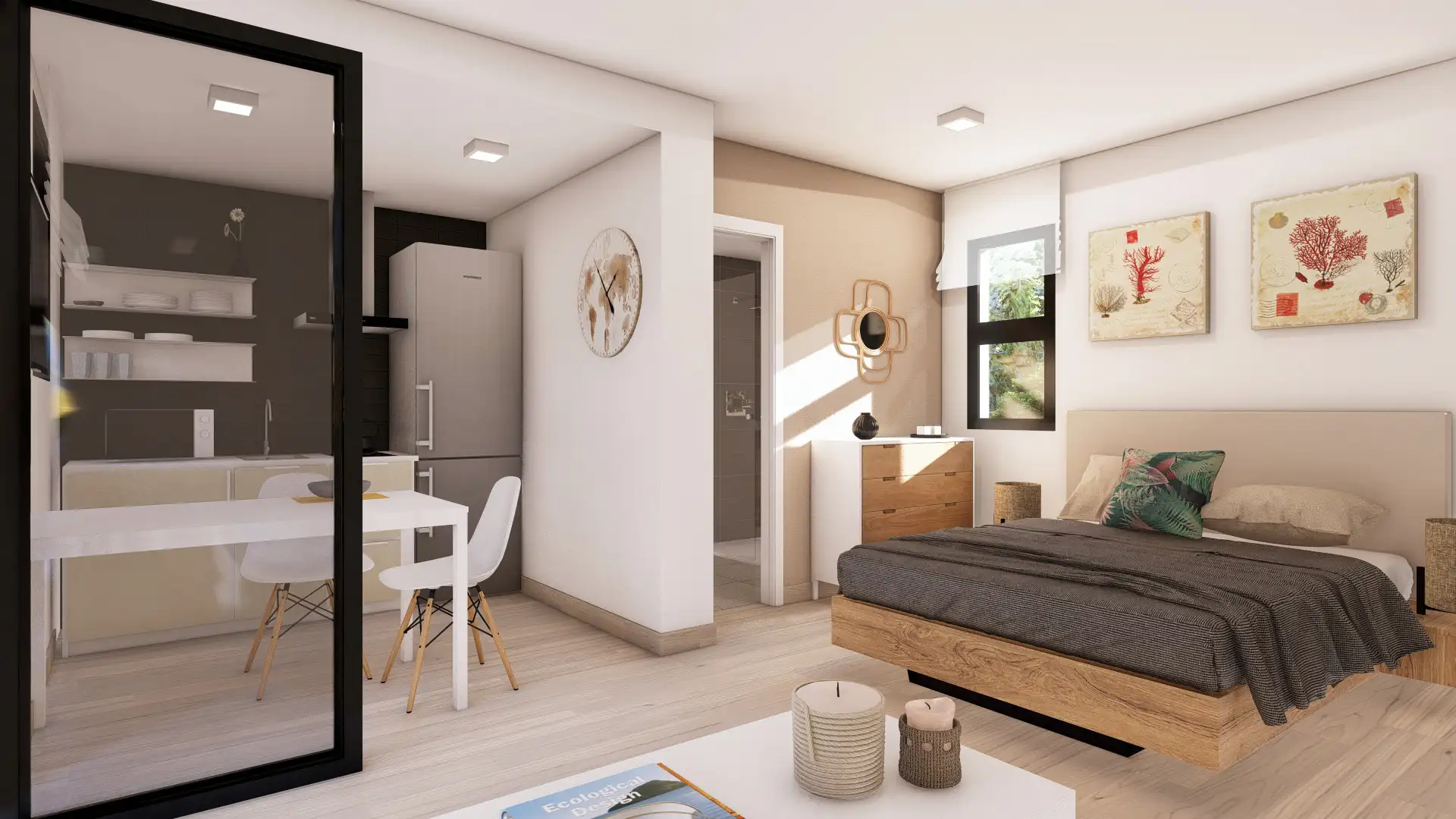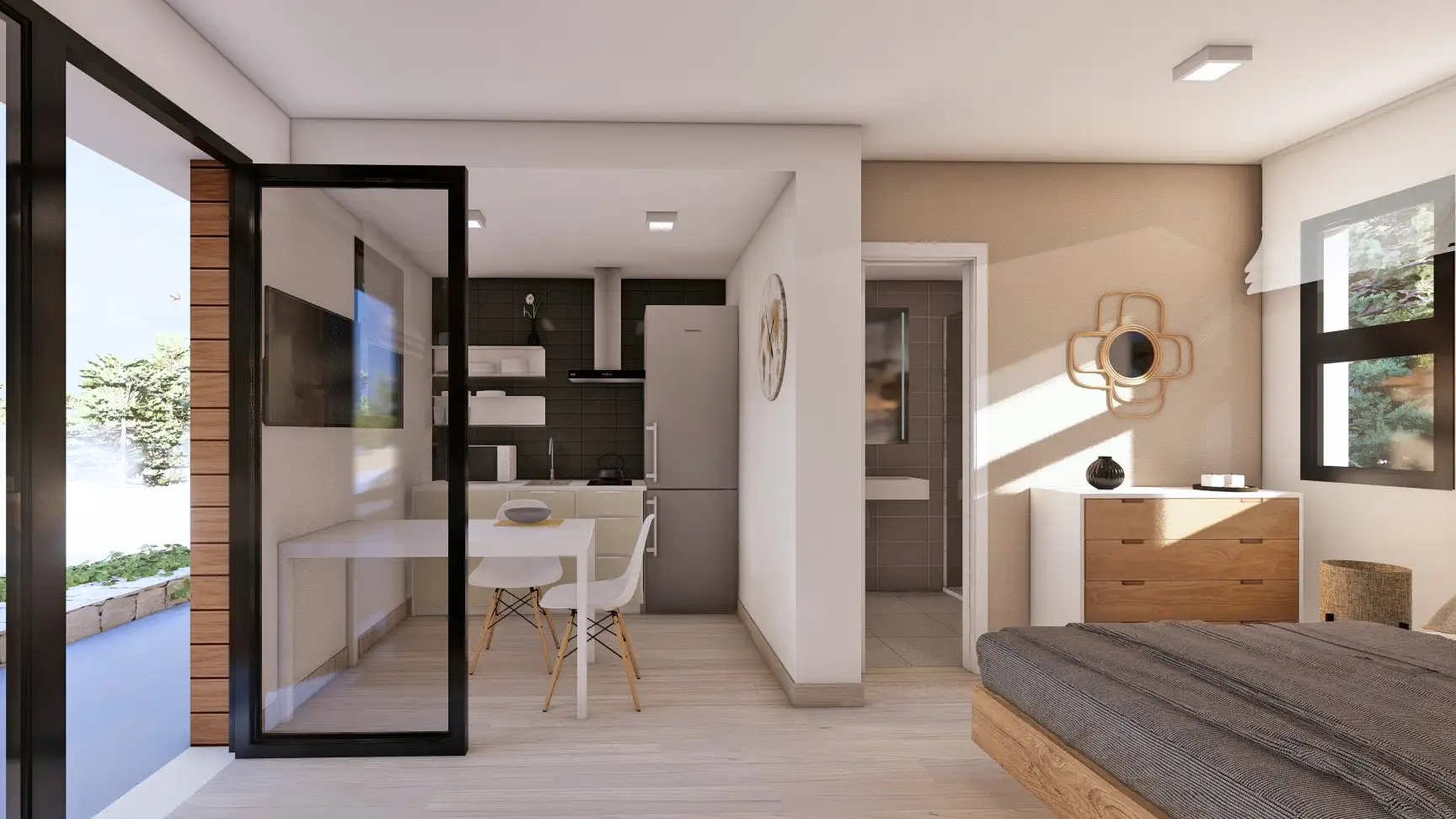 El proyecto nace de una premisa clara del cliente: emplear contenedores marítimos para crear un alojamiento turístico sostenible, compacto y de rápida ejecución, sin renunciar a la calidad espacial ni al confort. Para ello, reutilizamos los contenedores como módulos estructurales base, aprovechando su resistencia. De este modo, se obtiene de manera rápida y económica una parte sustancial de la estructura y de los cerramientos de la edificación.